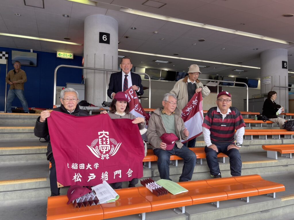 自転車早慶戦の応援に行きました。11月16日(日)、急な呼びかけにも関わらず9名の方にご参加いただき、松戸競輪場(北松戸駅近く)に出向きました。市川稲門会からも2名ご参加いただいております。