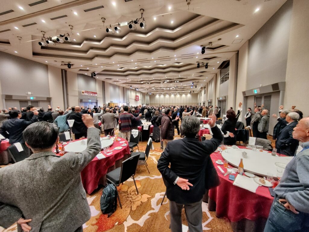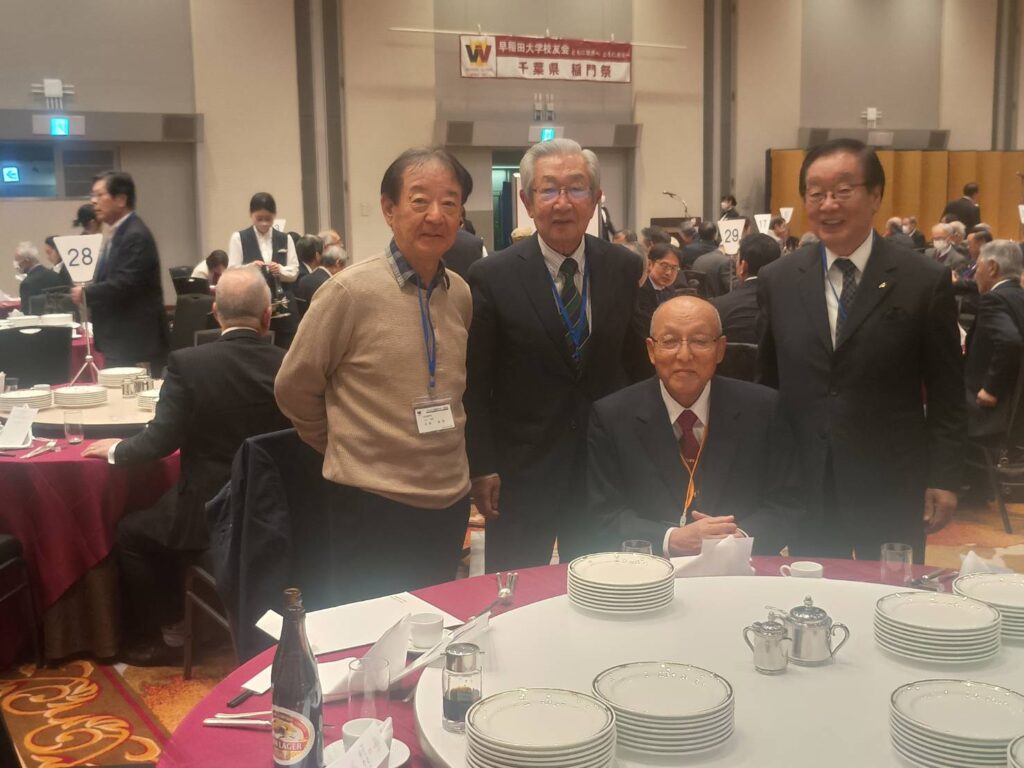 集まった早大OBは450名余りで、出席者数では全国の都道府県稲門祭の中でトップだそうです。我が松戸稲門会からも、20名ほどが参加し、懇親会ではテーブル2つを占めました。