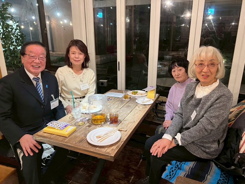 岩永さんの司会で会長挨拶、乾杯に続き、4人の新入会員の紹介、クラブ活動の報告がありました。様々な会員がグラス片手に楽しく談笑する姿が印象的です。