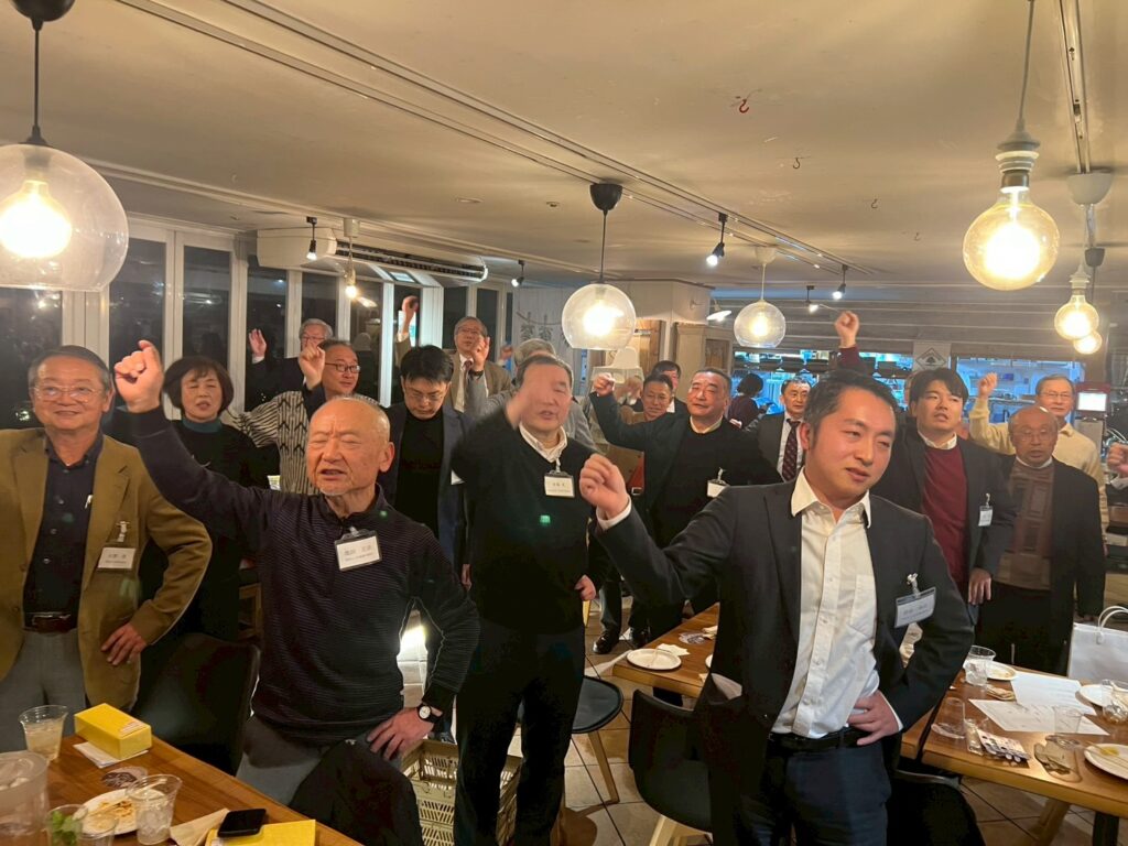 最後は恒例の千葉さんのリードによる校歌合唱とエール。そして小野副会長の一本締めでお開きとなりました。笑顔でお帰りになる顔、顔、顔。嬉しくなりました。