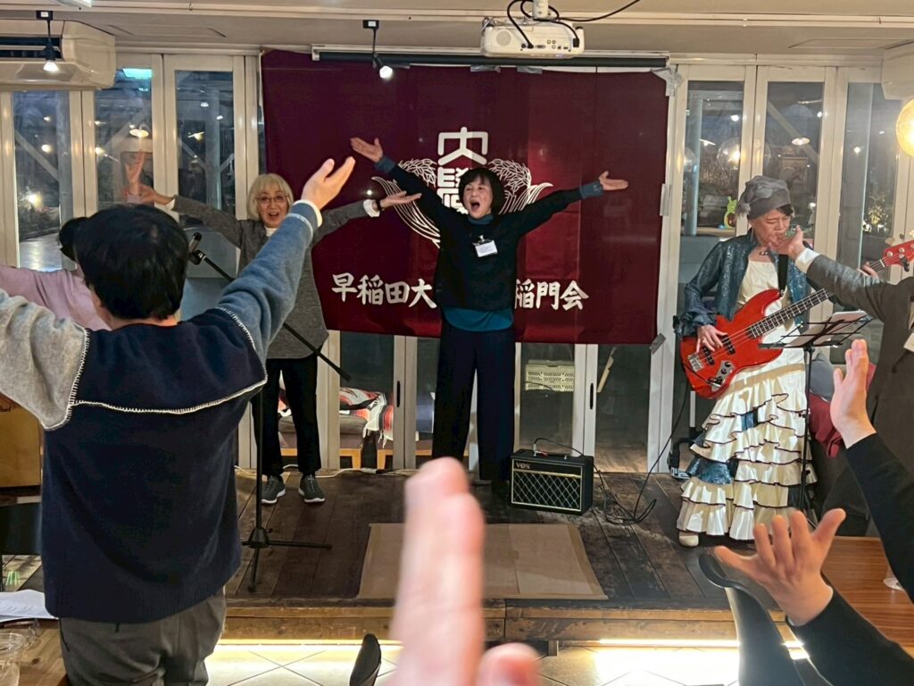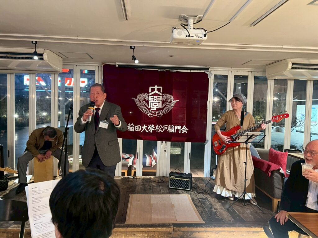 和やかに進むうちに、この夜のため急遽結成された「松戸稲門会バンド」が登場します。